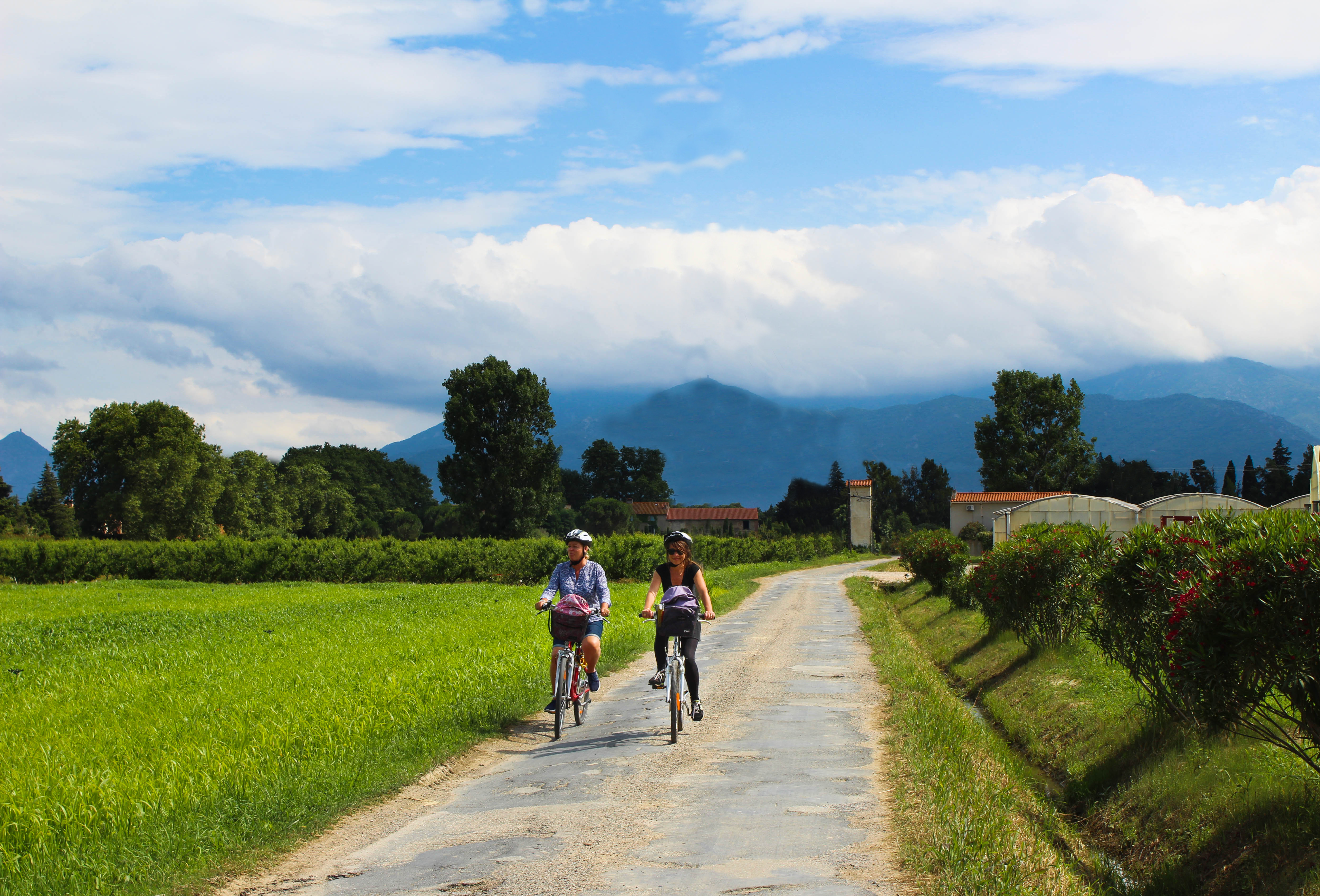 - Continuer sur le chemin de Saint-André. Prendre tout droit sur la piste de l'Euro Vélo 8 jusqu'à Sorède. Dans ce village, vous pourrez visiter l'ESAT, Fabrique de fouets et autres objets en bois de Micocouliers, un savoir-faire ancestral. A découvrir aussi les rives du Tassio et le quartier du Campet. Retour sur l'Euro Vélo 8 .
